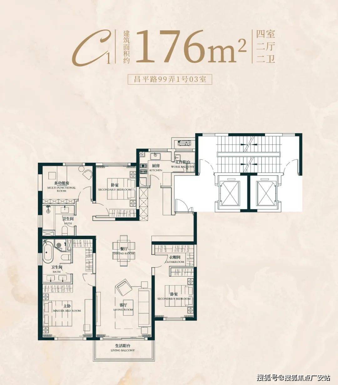 项目是准1梯1户的梯户比配置,全户型都有相对私密的归家空间,面积实用率非常高!